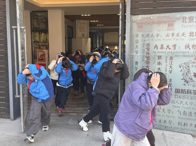教学区应急疏散演练有序推进,随着警报声响起,全体师生迅速反应,按照预设路线弯腰低姿、有序撤离,全程紧张高效、规范有序。此次演练进一步规范了应急处置流程,提升了师生应对突发情况的快速反应能力与协同配合能力,夯实校园应急安全基础。