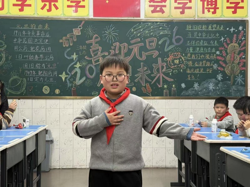 岁序更替,华章日新。为庆祝2026年元旦佳节,丰富校园文化生活,营造欢乐祥和的节日氛围,我校组织各班级开展了形式多样、内容精彩的元旦联欢会。全校师生欢聚一堂,用歌声、笑声与掌声迎接崭新的一年,校园内处处洋溢着喜庆热烈的节日气息。