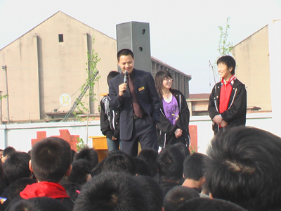我校一千多名师生集中在学校体育场上,兴致勃勃地听取王铭峰老师的讲学。王老师从中国人为什么要学英语及如何养成良好学习习惯出发,现场传授了李阳疯狂英语快速突破法,与全体学生分享了李阳老师成功的秘诀,让大家在较短时间内掌握了李阳“疯狂英语学习法”的要领,增强了快速学好英语、大幅提升英语成绩的信心。同时,对学生进行了一次生动的爱国主义教育和感恩教育,使大家深深地被激励、被感动。我校谢俊杰老师和多名学生与主讲人的激情互动将报告会一次次推向高潮。