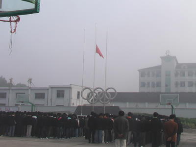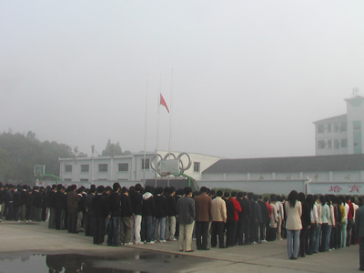 根据国务院公告,19日至21日为全国哀悼日。19日下午14时28分,全院师生默哀三分钟,向灾区死难同胞表示沉痛哀悼。