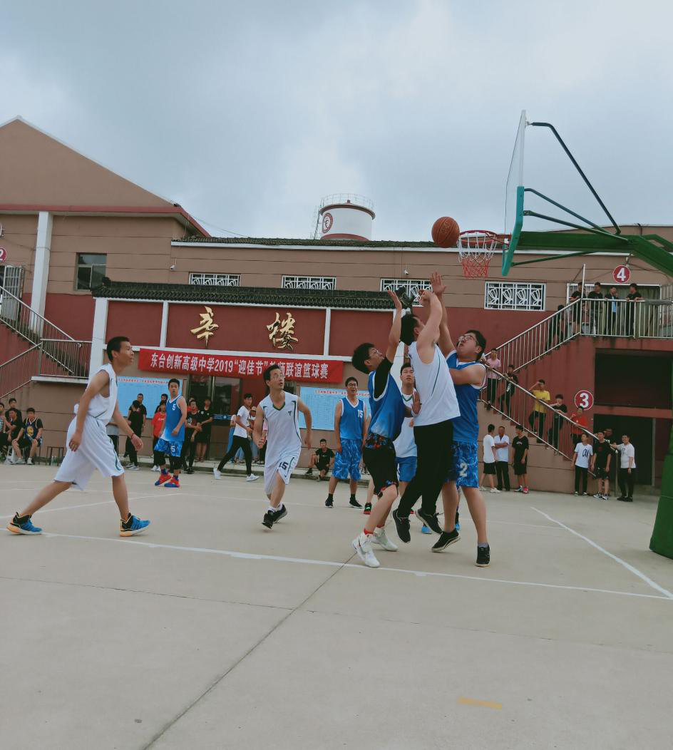 9月10日上午10时,东台创新高级中学篮球场上一条2019“迎佳节”教师联谊篮球赛的横幅格外醒目,蓝白两队(创之队及新之队)中青年教师正在球场上激烈拼抢。本次比赛适逢学校正在创四星工作,领导及老师工作繁忙,又有阴雨天气的影响,尽管如此,大家都克服工作、天气、身体等各方面的困难,披挂上阵,在篮球场上挥汗如雨,为争夺每一分而奋力拼搏。比赛精彩纷呈,场上队员雄姿英发,场外观众热情高涨,欢呼声、呐喊声一次次将比赛推上高潮。