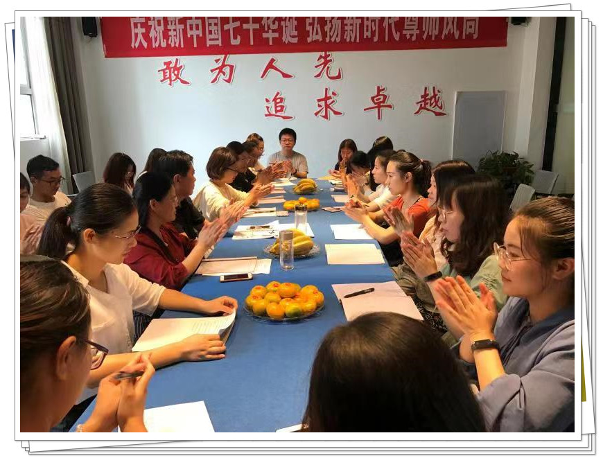 在第三十五个教师节来临之际,9月10日上午,东台创新小学召开主题为“庆祝新中国七十华诞,弘扬新时代尊师风尚”的教师节座谈会。创新教育集团刘宝华总督学, 创新小学陆亚红校长及全体教师共同参加。