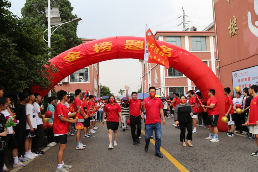 在热烈的掌声、响亮的呐喊声中,创新高中考生个个精神饱满,斗志昂扬,迈着自信的步伐,踏上了象征着如意吉祥、梦想成真的中央大道,跨过誓夺桂冠的“金榜题名”门,带着定酬凌云志的祝福,走向战场,奔赴星辰大海。