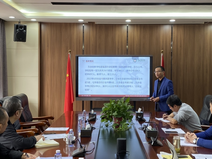 丁磊校长代表学校感谢教师发展中心一行领导对我校的工作指导和关切鼓励,表示全体创新人将从严求实、笃行不怠,扎扎实实做好各项工作,全面推进学校高质量发展,办人民满意的学校,以实际行动迎接党的二十大胜利召开,为东台创新学校的辉煌谱写新歌。