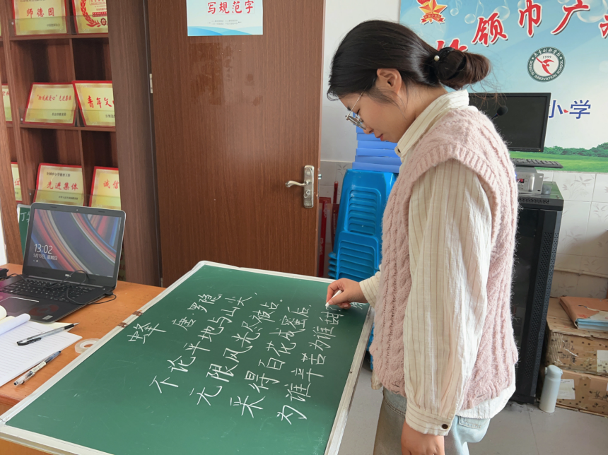 青年教师们全神贯注地投入到书写中,将身心融于笔端。一笔一画地雕琢着每一个汉字,一支细腻的粉笔在光滑的黑板上舞动,犹如上演着一场精彩的“字体芭蕾”。