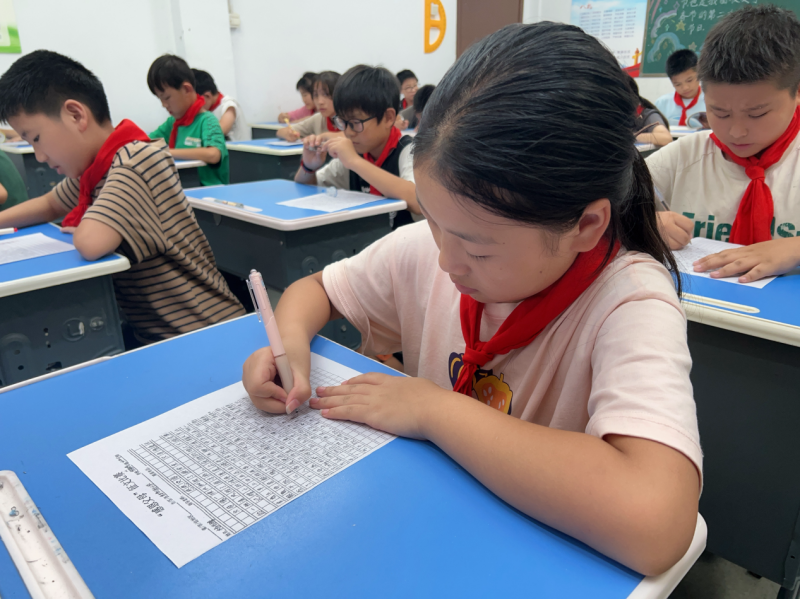 瞧,选手们仔细审题,巧妙构思的样子多动人啊!他们时而凝神思考,时而思如泉涌。端正的坐姿、工整的字迹,见证日积月累的教育力量;自信的神情、飞舞的笔墨,是沉淀后的厚积薄发;静谧的赛场、洁白的稿纸上留下的是孩子们朴实的心灵感悟。