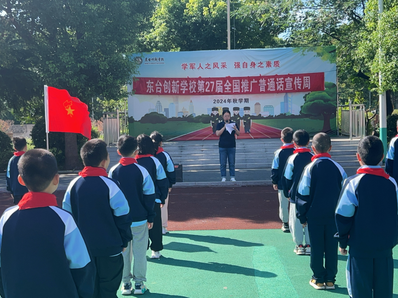 在这秋意渐浓的九月,为大力推广和规范使用国家通用语言文字,传承弘扬中华优秀传统文化,促进提升国家通用语言文字普及程度和普及质量,东台创新学校在第27届全国推广普通话宣传周中,以“加大推普力度 筑牢强国语言基石”为主题开展了推普周系列活动。