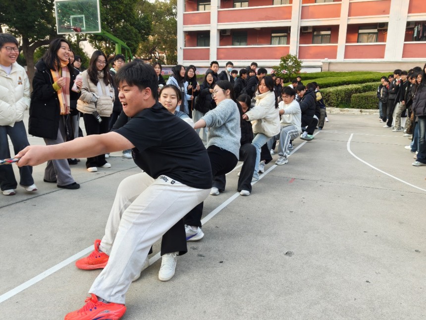 本次比赛以班级为纽带。赛场上,同学们紧握长绳、脚蹬实地,在整齐划一的发力中凝聚班集体力量;拉锯僵持间,一张张青春脸庞写满坚毅,紧握绳索的双手即便勒出红痕也绝不松懈。这一刻,“心往一处想、劲往一处使”的团队合作精神在这一刻得到诠释。观众们也没有闲着,加油声、呐喊声此起彼伏,与初冬暖阳构成了创新校园里最鲜活的青春图景。