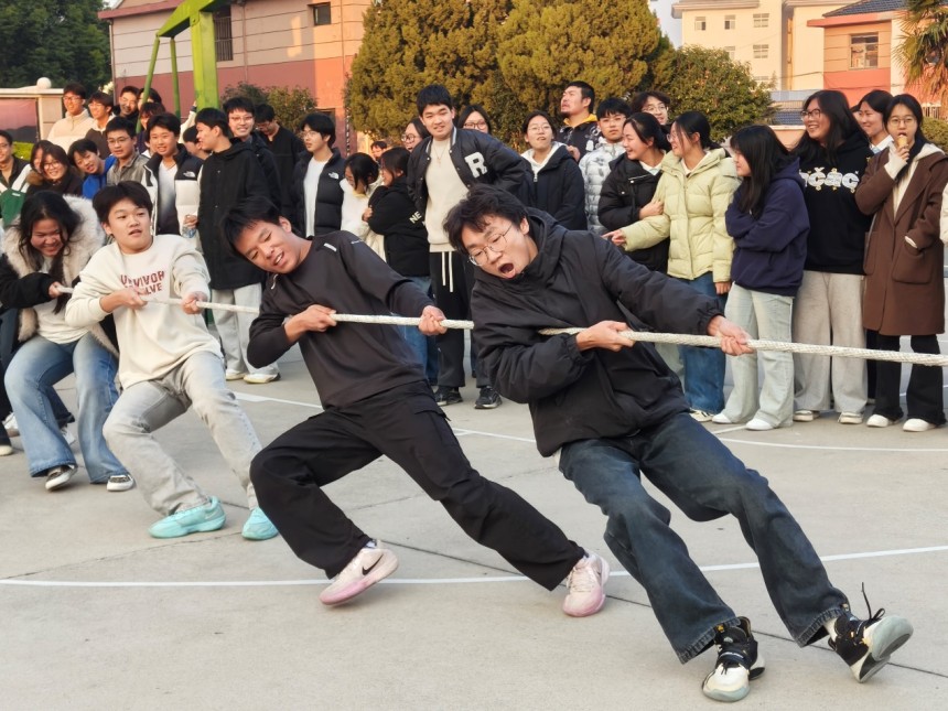 拔河友谊赛极大丰富了学生在校的文化生活,在增强了身体素质的同时,帮助学生放松了身心,释放了压力。本次活动既搭建了释放活力的舞台,更以协作拼搏为笔,书写着团队精神的动人篇章,让校园焕发着积极向上、和谐健康的蓬勃生机。