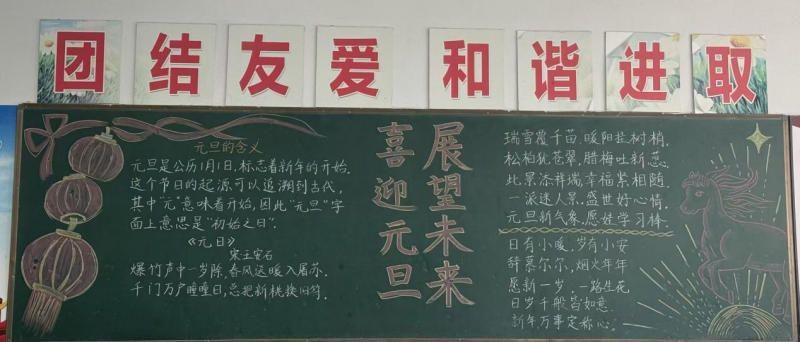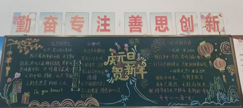 一幅幅设计新颖独特、色彩明丽夺目、图文相映成趣的黑板报,将节日的喜庆祥和与对新年的热切期盼尽数铺展,成为校园里一道亮丽又温暖的文化风景线。