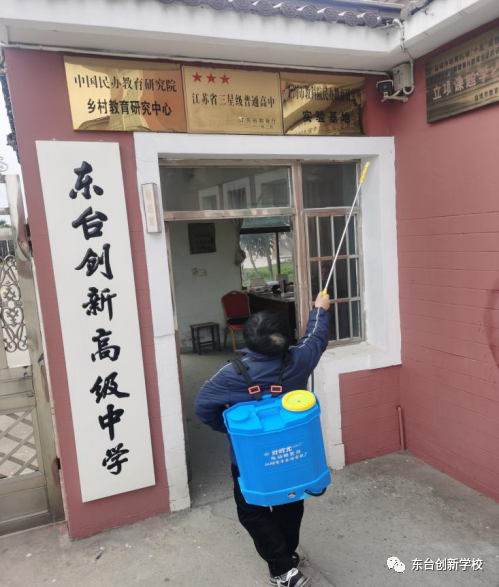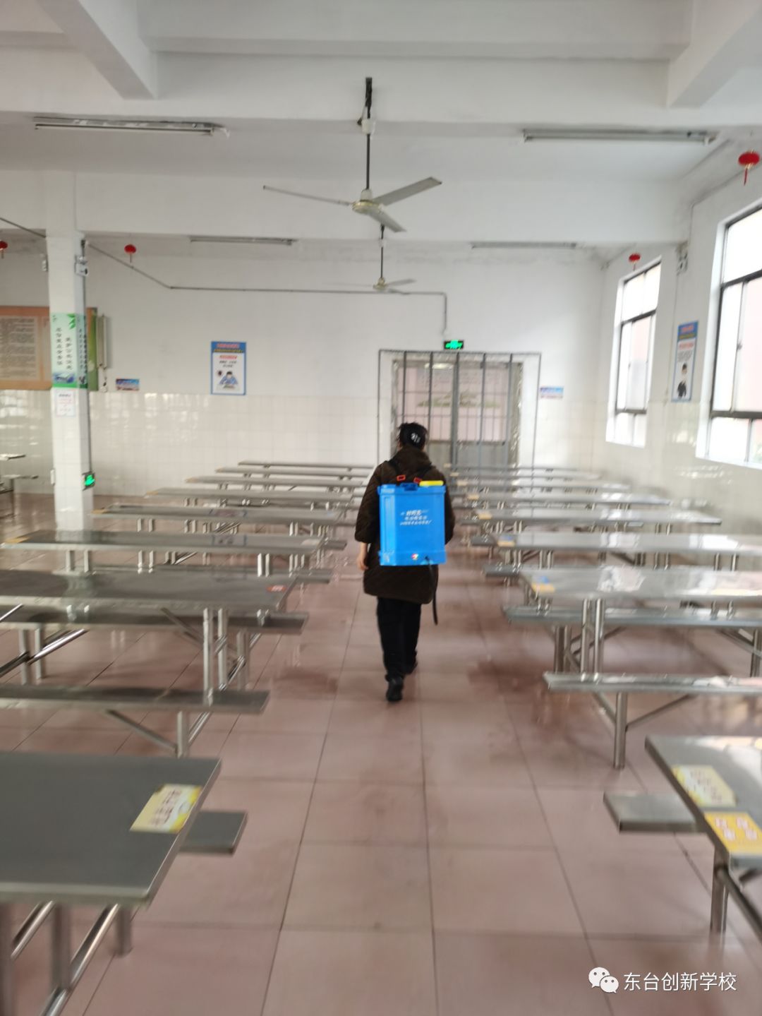 为进一步做好新型冠状病毒感染的肺炎疫情防控工作,营造一个安全、卫生的校园环境,确保教职员工、学生生命安全和身体健康,做好开学前准备工作。3月24日,东台创新高级中学疫情防控工作领导小组在前期严格防控和全面清扫的基础上,再次对教学楼、食堂等区域进行了一次全面的卫生消毒工作。