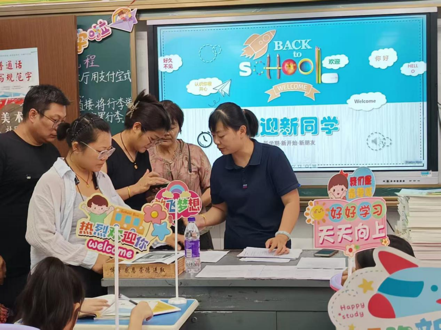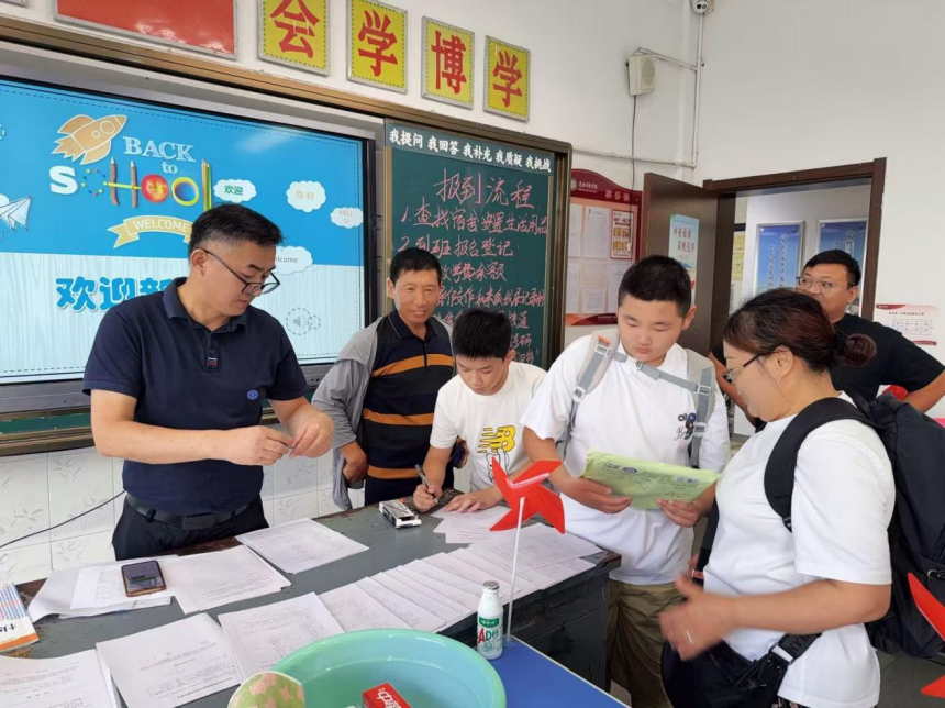 当家长与孩子们踏入教室的那一刻,一切准备就绪。黑板上,色彩斑斓的欢迎语,清晰的报道流程,每一步都透着细心与周到。班主任老师早已守候在此,他们面带微笑,耐心指导家长和同学们填写报到信息,用实际行动诠释着“教书育人”的深刻内涵。
