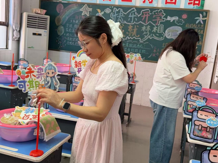 风穿过教学楼的回廊,卷起几片早落的叶子,落在窗台上那盆新换的绿萝旁。老师们的忙碌,从不是机械的准备,而是以匠心为墨、以深情为笔,在校园的时光里写下“欢迎回家”的诗行。当第一声铃响划破晨雾,他们定会站在霞光里,笑着接住每个奔向校园的身影——因为所有的等待,都只为这场美好的重逢。